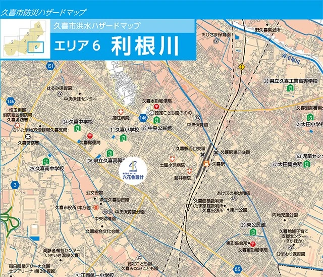 ちなみに六花舎設計のある場所を見てみると、洪水ハザードマップでは利根川水系エリアで0.5m未満ということが記載されていました。
