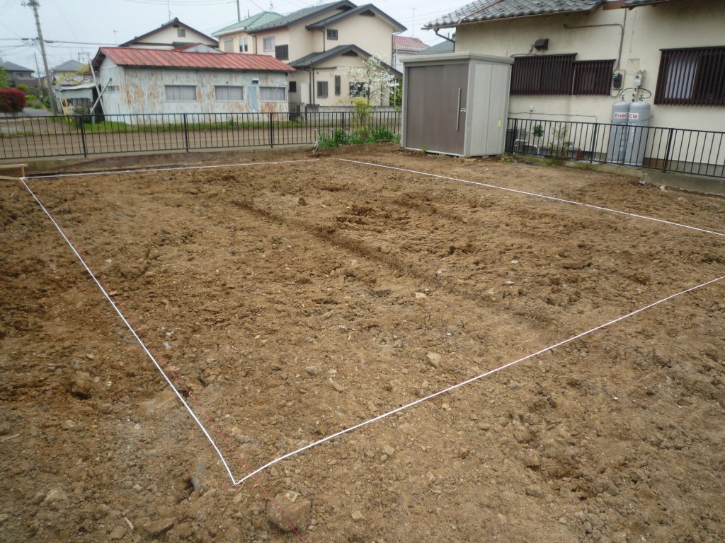 5月より新たに新築工事が始まる加須市旗井にて地縄張りを行ってきました。