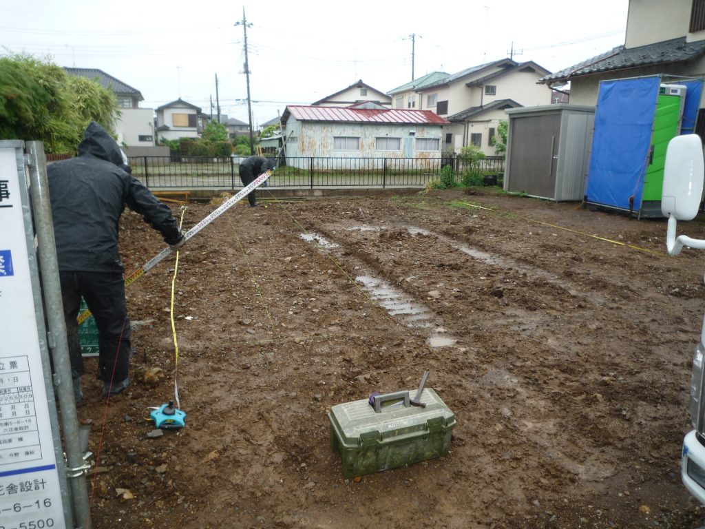 地鎮祭も無事終了し、生憎の雨の中「地盤改良工事」が始まりました。