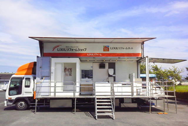 LIXIL水周りショールームの移動車もやってきて、13トンの大きなトラックで、あまりの大きさに皆さんびっくりです。
