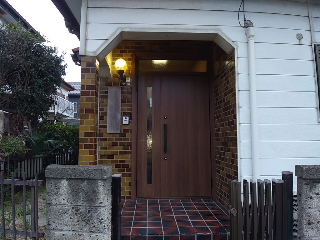 今回の工事は、既存の玄関の枠に新しい枠をカバーして覆うように取り付ける