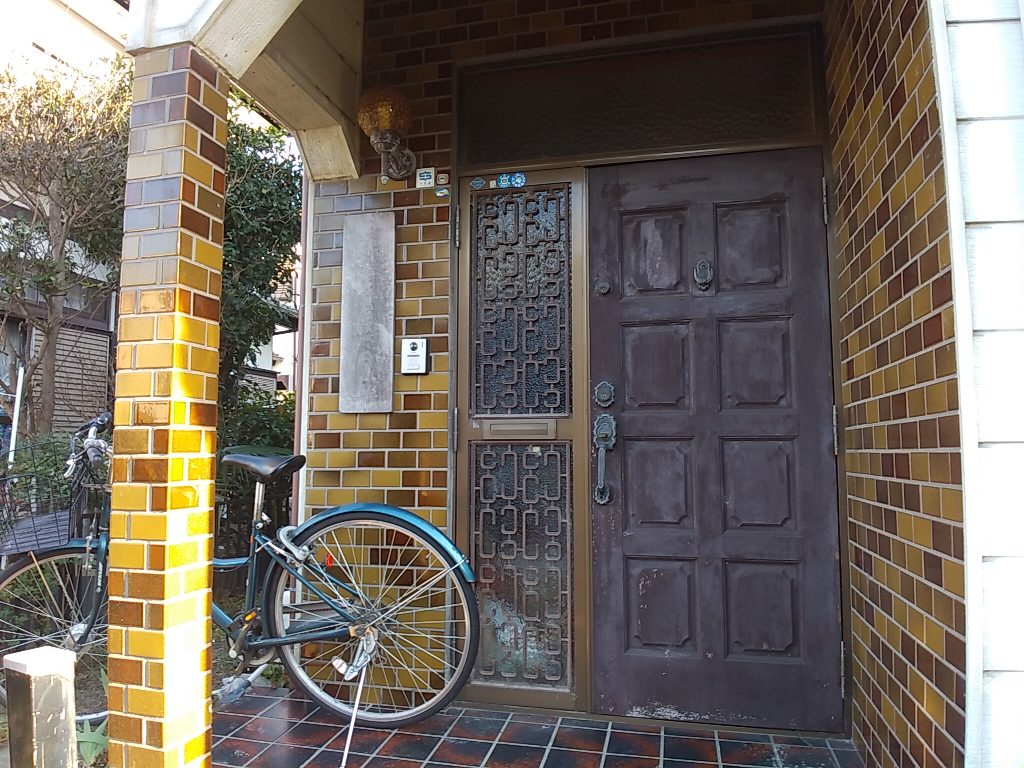 今回の工事は、既存の玄関の枠に新しい枠をカバーして覆うように取り付ける