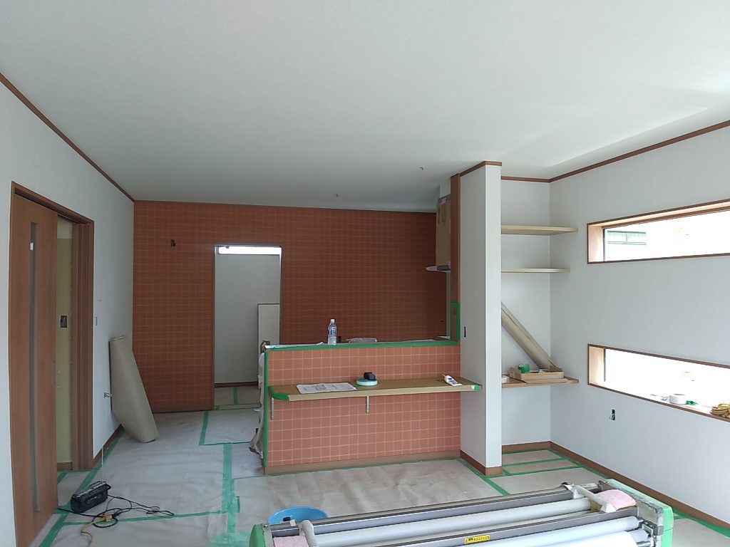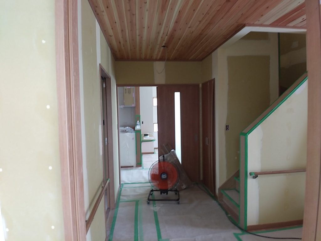 7月中旬に、引き渡し式を控えている現場では、現在急ピッチで「内装仕上げ工事」を行っております。