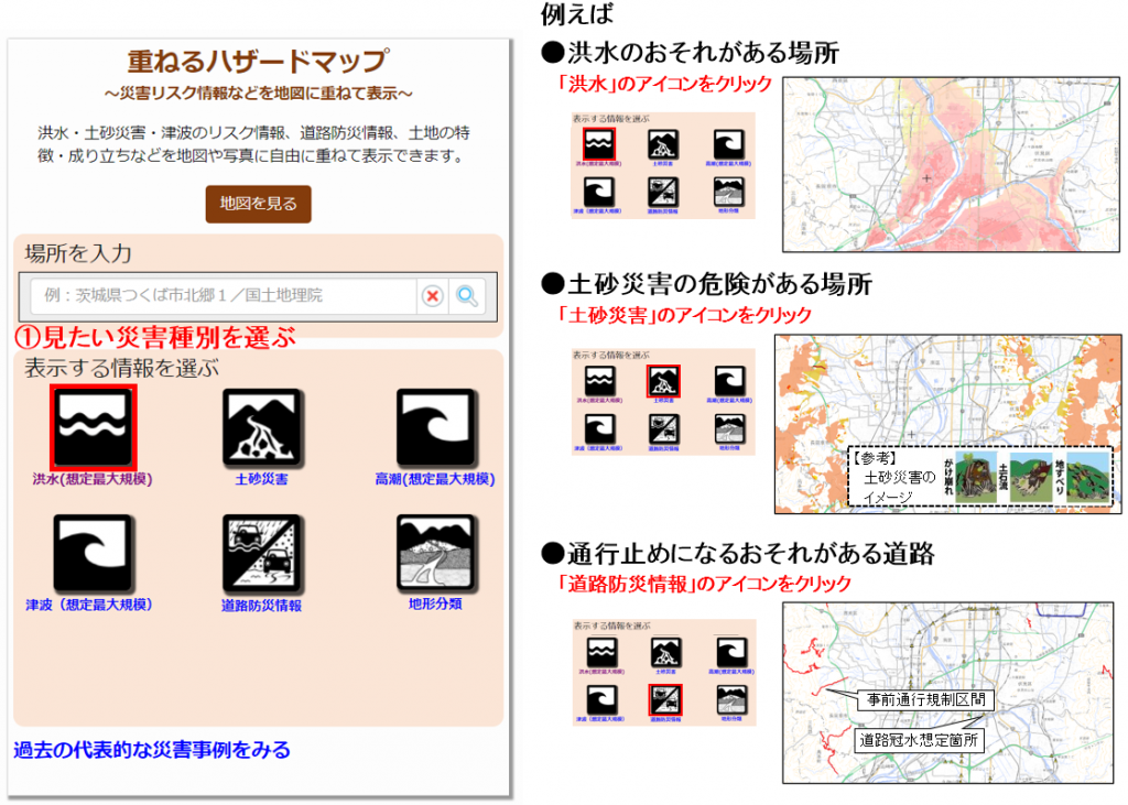 国土地理院の「重なるハザードマップ」などで警戒区域の確認が可能です。