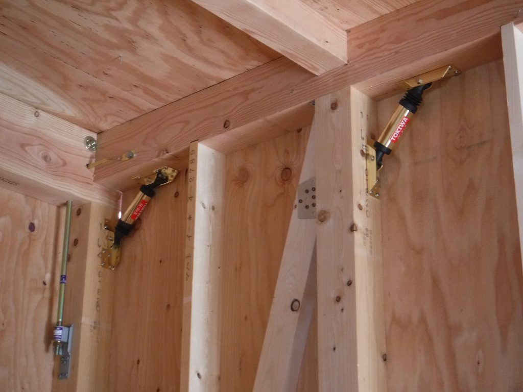 内部は、通常の耐力壁や筋交いのほかに、製震ダンパーを配置し耐震レベルを向上させております。