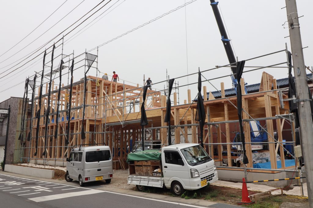 梅雨時期の中、雨も降らず無事に茨城県境町にて上棟式が行われました。