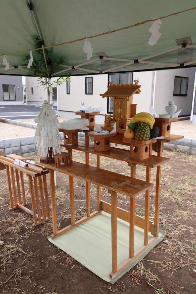 ・お施主様の家を建てることになった土地に住んでいる神様を祝い鎮め、土地を利用させてもらう許可を得ること。