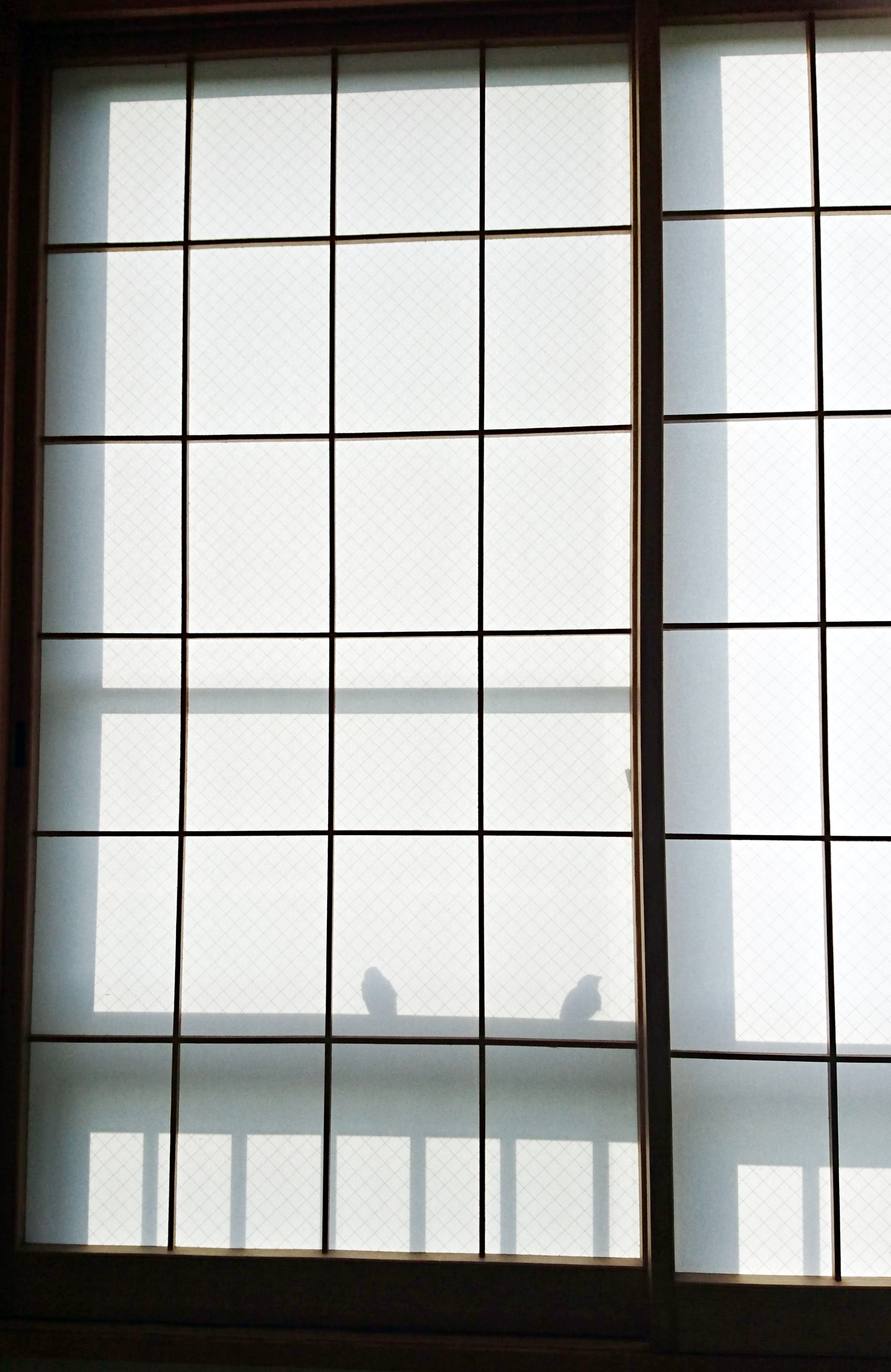 朝起きたら障子越しの窓辺にこんなシルエットが。